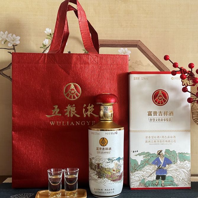 五粮液 富贵吉祥 智慧文化故事鉴赏 白酒52度500ml*2瓶装年货节礼物 五粮液富贵吉祥.智慧文化故事,选用中国历史智慧故事中最有代表意义的“田忌赛马”、“曹操称象”、“草船借箭‘、”大禹治水“四大故事为题材 兑换价格 20900 里程 会员卡别 终身白金卡 白金卡 金卡 银卡 普通卡 未满18岁禁止饮酒,过量饮酒有害健康 服务 由 晶隆汇优选食品馆 发货并提供售后 规格: 礼盒 购买数量: 件 库存件 配送地址: 立即购买 加入购物车 成功添加到购物车 关闭 购物车共有 种商品 总金额为: 组合销售 产品介绍 产品规格 售后服务 产品咨询 发现好货 五粮液 宜品 海洋之心 星空礼盒 浓香型白酒 52度 500ml*2瓶 20400 里程 红星蓝瓶二锅头绵柔8年陈酿53度750ml 清香型 2600 里程 红星蓝瓶二锅头绵柔8年陈酿53度750ml*6瓶 整箱装 清香型 13800 里程 牛栏山二锅头珍品十五年地道北京味 45度 400ml单瓶装 3000 里程 塔牌 花雕酒 三年陈绍兴酒500ml*2瓶装 特制黄酒 2200 里程