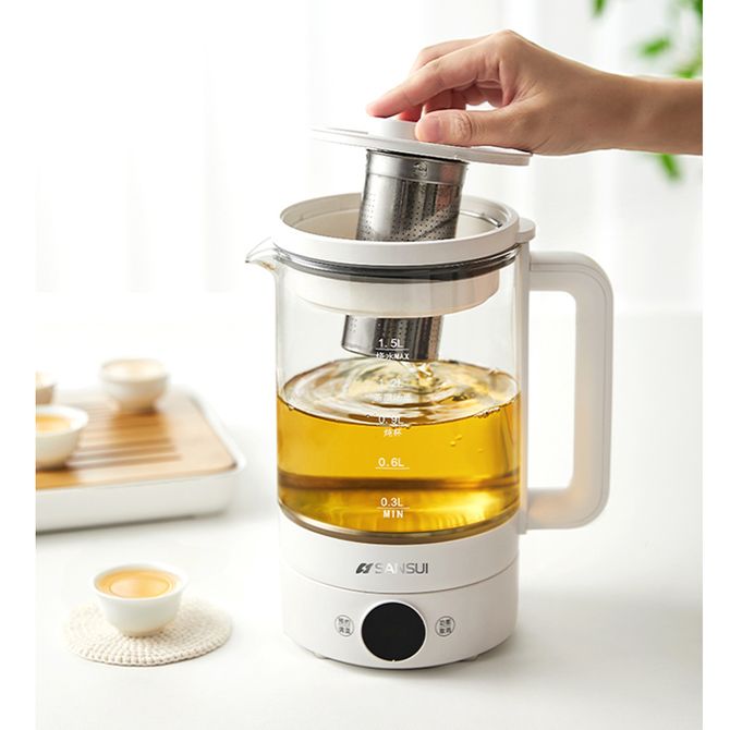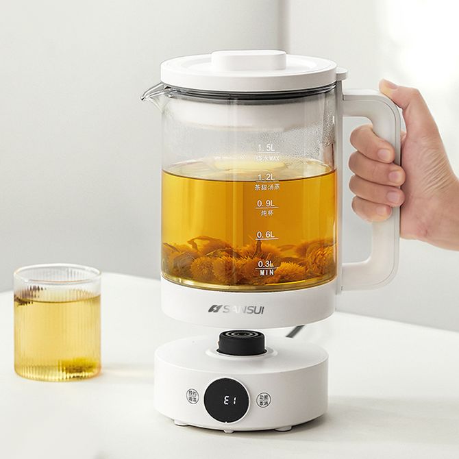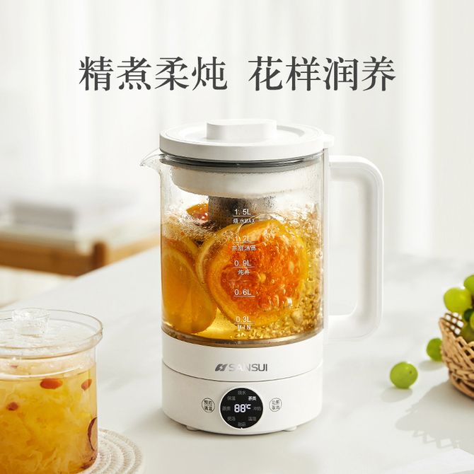 山水/Sansui 多功能隔水电炖养生壶1.5L带滤网 SH03 500ml炖盅,304不锈钢茶漏,24H预约 兑换价格 11300 里程 会员卡别 终身白金卡 白金卡 金卡 银卡 普通卡 儿童卡 服务 由 艾嘉智能电器生活馆 发货并提供售后 颜色: 象牙白色 购买数量: 件 库存件 配送地址: 立即购买 加入购物车 成功添加到购物车 关闭 购物车共有 种商品 总金额为: 组合销售 产品介绍 产品规格 售后服务 产品咨询 发现好货 九阳/Joyoung 养生壶1.5L茶具电茶壶煮茶壶花茶壶玻璃煮茶器煎药壶中药锅药膳电水壶烧水壶 3900 里程 九阳/Joyoung 养生壶迷你玻璃花茶壶煮茶器 12大功能11档温度 电水壶热水壶烧水壶 1.5L DGD1506BQ 3900 里程 美的/Midea 养生壶 1.5L家用多功能小型全自动办公室烧水壶加厚玻璃煮茶热水壶 MK-YS15P201 4200 里程 美的/Midea 养生壶 1.5L家用养生壶全自动玻璃烧水壶24h预约烧水壶12小时防干烧保护智能恒温 MK-YS15P202 3700 里程 美的/Midea 养生壶 1.5L全自动电热水壶 24h预约12小时智能恒温 14大功能11档控温 花茶壶煮茶器MK-Y12Q 3500 里程