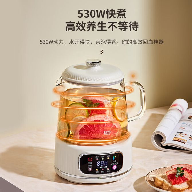 组合销售 产品介绍 产品规格 售后服务 产品咨询 发现好货 九阳/Joyoung 养生壶1.5L茶具电茶壶煮茶壶花茶壶玻璃煮茶器煎药壶中药锅药膳电水壶烧水壶 3900 里程 九阳/Joyoung 养生壶迷你玻璃花茶壶煮茶器 12大功能11档温度 电水壶热水壶烧水壶 1.5L DGD1506BQ 3900 里程 美的/Midea 养生壶 1.5L家用多功能小型全自动办公室烧水壶加厚玻璃煮茶热水壶 MK-YS15P201 4200 里程 美的/Midea 养生壶 1.5L家用养生壶全自动玻璃烧水壶24h预约烧水壶12小时防干烧保护智能恒温 MK-YS15P202 3700 里程 美的/Midea 养生壶 1.5L全自动电热水壶 24h预约12小时智能恒温 14大功能11档控温 花茶壶煮茶器MK-Y12Q 3500 里程