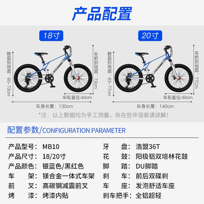 萌大圣 MB10儿童青少年学生山地车脚踏单车 (7速) 20寸 20寸7速 建议身高:120-150cm 兑换价格 37400 里程 会员卡别 终身白金卡 白金卡 金卡 银卡 普通卡 儿童卡 服务 由 孤岛户外 发货并提供售后 颜色: 红色 蓝色 购买数量: 件 库存件 配送地址: 立即购买 加入购物车 成功添加到购物车 关闭 购物车共有 种商品 总金额为: