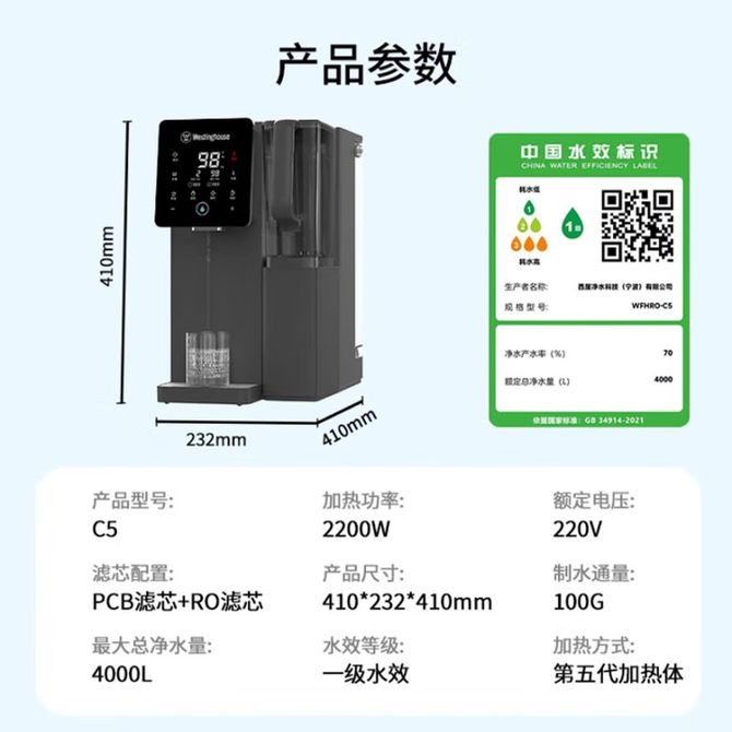西屋/Westinghouse WFHRO-C5s 家用RO反渗透净水器加热直饮一体机即热净饮水机矿化加热台式免安装桌面饮水机 3秒速热 矿化弱碱科技 2支芯 杯体感应夜灯 8档水温 6档水量 兑换价格 133100 里程 会员卡别 终身白金卡 白金卡 金卡 银卡 普通卡 儿童卡 服务 由 弘济家电 发货并提供售后 颜色: 白色 黑色 购买数量: 件 库存件 配送地址: 立即购买 加入购物车 成功添加到购物车 关闭 购物车共有 种商品 总金额为: