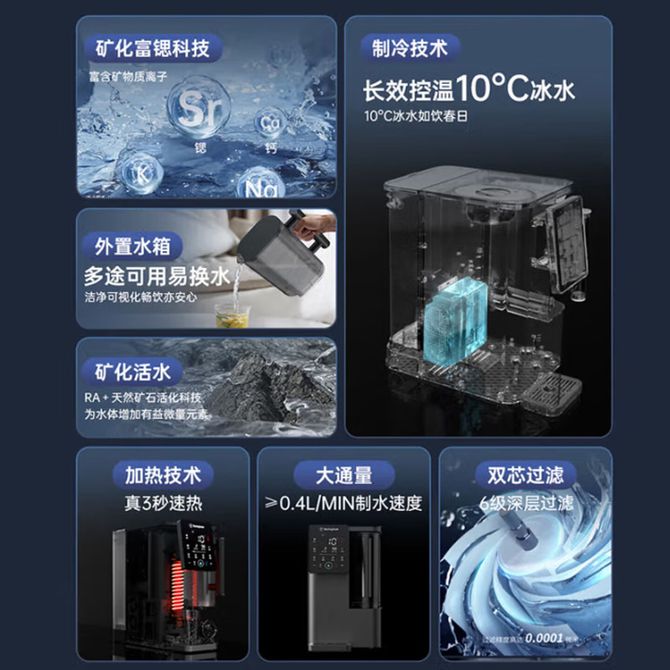西屋/Westinghouse WFHRO-H01 净饮机 台式免安装净饮水直饮机 即热制冷一体机矿化富锶版 一键自清洁 RO反渗透净水器 UV杀菌 9档自由调水温 急速制冷 6L大水箱 兑换价格 119400 里程 会员卡别 终身白金卡 白金卡 金卡 银卡 普通卡 儿童卡 服务 由 弘济家电 发货并提供售后 颜色: 黑色 购买数量: 件 库存件 配送地址: 立即购买 加入购物车 成功添加到购物车 关闭 购物车共有 种商品 总金额为: 组合销售 产品介绍 产品规格 售后服务 产品咨询 发现好货 松下/Panasonic 过滤净水器 家用滤水壶 净水壶 厨房自来水过滤净水器TK-EUNP51W(白色) 7200 里程 松下/Panasonic 过滤净水器 家用滤水壶 净水壶 厨房自来水过滤净水器TK-EUNP51A(蓝色) 7200 里程 西屋/Westinghouse 过滤净水器 家用滤水壶 净水壶 3.5L宝蓝色 滤水壶 5400 里程 小熊/Bear 龙头净水器(1芯装)厨卫两用双模式出水家用自来水过滤器六重复合过滤 2200 里程 小熊/Bear 水龙头净水器前置水龙头过滤器家用厨房自来水过滤杂质可视化 2600 里程