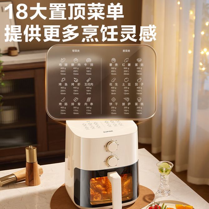 组合销售 产品介绍 产品规格 售后服务 产品咨询 发现好货 苏泊尔(SUPOR)空气炸锅 家用多功能4.2L大容量 烤箱薯条机 无油烟电炸锅 大功率 无油低脂煎炸锅KJ42D811 6500 里程 苏泊尔(SUPOR)空气炸锅家用3L大容量电炸锅 蒸汽嫩炸多功能无油烟煎炸薯条机烤箱KD30DQ815 21700 里程 美的/Midea 空气炸锅 可视 不用翻面 金属内腔 蒸汽嫩炸 三档烘烤风力 5L KZC5089 10700 里程 小熊/Bear 空气炸锅 4D漩烤不用翻面 全自动 5L实用大容量 可视 蒸汽嫩炸 控油脱脂 炸烤箱一体机 9100 里程 小熊/Bear 家用多功能锅电炒锅电火锅电煮锅电锅分体式C60J5 6500 里程