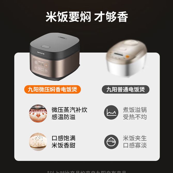 九阳/Joyoung 电饭煲4L容量家用多功能铜匠厚釜内胆电饭锅微压焖煮技术煮米饭锅 4L大容量 6大烹饪功能 微压焖煮技术 铜匠厚釜 兑换价格 8700 里程 会员卡别 终身白金卡 白金卡 金卡 银卡 普通卡 儿童卡 服务 由 中农创家电生活馆 发货并提供售后 颜色: 其他 购买数量: 件 库存件 配送地址: 立即购买 加入购物车 成功添加到购物车 关闭 购物车共有 种商品 总金额为: 组合销售 产品介绍 产品规格 售后服务 产品咨询 发现好货 苏泊尔(SUPOR) 电饭煲电饭锅4L大容量 不粘内胆4-6个人前置大屏面板24小时预约上蒸下煮多功能家用智能SF40FC0063 8300 里程 奥克斯/AUX 电饭煲3L电饭锅 2-3人小型预约智能电饭煲VK-309F2 5100 里程 苏泊尔(SUPOR) 迷你电饭煲家用电饭锅2-3人3L小容量蓝钻不粘内胆快煮饭功能智能预约小型多功能SF30FC0187 6100 里程 美菱/MELNG 电饭煲3L触控式预约定时MF-LC3005 4400 里程 苏泊尔(SUPOR) 煮饭煮粥智能预约多功能一锅多用小型微压电饭锅30FC0187 7200 里程