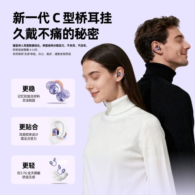 魔声 夹耳式蓝牙耳机长续航运动开放式耳机新定义出行听歌体验 蓝牙6.0芯片 兑换价格 4400 里程 会员卡别 终身白金卡 白金卡 金卡 银卡 普通卡 儿童卡 服务 由 贝洛美智能科技精品馆 发货并提供售后 颜色: 紫色 购买数量: 件 库存件 配送地址: 立即购买 加入购物车 成功添加到购物车 关闭 购物车共有 种商品 总金额为: 组合销售 产品介绍 产品规格 售后服务 产品咨询 发现好货 雷摄 运动蓝牙耳机无线跑步超长续航待机半入耳降噪高端健身2024新款 BT-03半入耳 1400 里程 华为/Huawei FreeBuds SE 3 无线蓝牙耳机 流光金 6100 里程 纽曼 LY63蓝牙耳机耳夹式骨传导概念开放式不入耳无线运动音乐通话降噪 3400 里程 纽曼(Newmine) 夹耳式蓝牙耳机 超无感佩戴空气感舒适体验 LY63 3400 里程 飞利浦(PHILIPS) 骨传导通话降噪耳夹式真无线开放耳机TAT3469 7000 里程