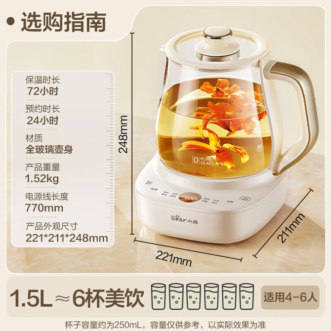 小熊/Bear 养生壶 1.5L容量 YSH-H15F2 恒温壶 办公室多功能煮茶壶 0胶水0金属 全玻璃养生壶 恒温壶 办公室多功能煮茶壶 兑换价格 13500 里程 会员卡别 终身白金卡 白金卡 金卡 银卡 普通卡 儿童卡 服务 由 锦宁家电馆 发货并提供售后 颜色: 其他 购买数量: 件 库存件 配送地址: 立即购买 加入购物车 成功添加到购物车 关闭 购物车共有 种商品 总金额为: