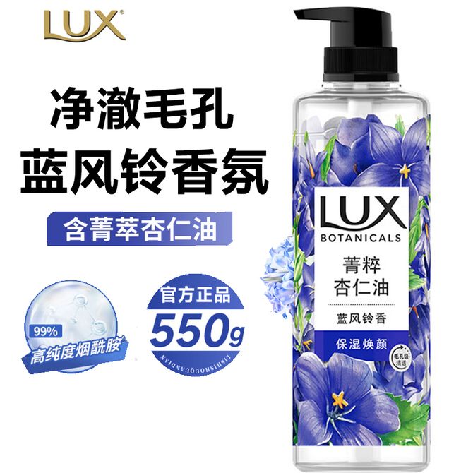 力士/LUX 植萃精油香氛沐浴露蓝风铃香与烟酰胺 550g 植系香氛,毛孔级清透,不含皂基,不含色素,不含PP防腐剂。 兑换价格 2100 里程 会员卡别 终身白金卡 白金卡 金卡 银卡 普通卡 儿童卡 服务 由 京狮文化生活馆 发货并提供售后 化妆品容量: 550g/ml 购买数量: 件 库存件 配送地址: 立即购买 加入购物车 成功添加到购物车 关闭 购物车共有 种商品 总金额为: 组合销售 产品介绍 产品规格 售后服务 产品咨询 发现好货 可悠然(KUYURA)沐浴露香氛美肌沐浴乳(恬静清香550ml) 3300 里程 舒肤佳/Safeguard 经典净护沐浴露纯白清香360g/720g/1000g 1100-2100 里程 蓝月亮 抑菌洗手液 500g*6瓶 芦荟滋润保湿 2900 里程 力士/LUX 沐浴露 恒久嫩肤沐浴乳400g/700g/900g/1000g 1100-1700 里程 阿道夫(ADOLPH) 香氛沐浴露(水润舒缓)618ml 1500 里程