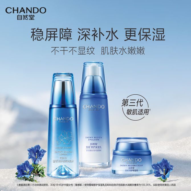 自然堂/Chando 雪域水乳护肤品套装 【三件套】冰肌水+保湿乳+保湿霜 水160mL+乳120mL+霜50g 敏肌适用 快速补水 润干燥 兑换价格 8700 里程 会员卡别 终身白金卡 白金卡 金卡 银卡 普通卡 儿童卡 服务 由 伟云达 发货并提供售后 套装分类: 组合装 颜色: 蓝色 化妆品容量: 组合 购买数量: 件 库存件 配送地址: 立即购买 加入购物车 成功添加到购物车 关闭 购物车共有 种商品 总金额为: