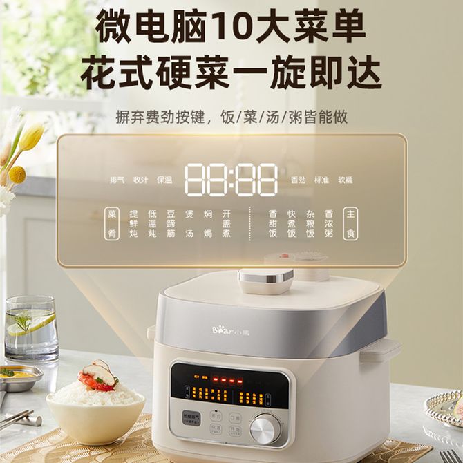 组合销售 产品介绍 产品规格 售后服务 产品咨询 发现好货 苏泊尔(SUPOR)电压力锅 6升大容量 智能触控 球釜双胆 开盖收汁 一键排压 SY-60YC8001Q 高压锅 16900 里程 美的/Midea 电压力锅家用5L大容量多功能高压锅双胆一键收汁智能预约不粘电高压锅电饭锅煮粥煲汤锅 一锅双胆【一键收汁入味】 YL50M1-702 10600 里程 苏泊尔(SUPOR) 5L电压力锅家用电高压锅双胆高压电饭锅煮饭智能预约 SY-50YC8186 11300 里程 美的/Midea 电压力锅 【一锅双胆】5L全自动家用智能预约 上蒸下煮 不粘双胆煲汤炖肉 YL50Q3-451 10900 里程 美的/Midea 电压力锅 高压锅家用电压力煲智能预约电饭煲大容量多功能定时预约电饭煲3-8人单胆旋钮款4L MY-E4809 8700 里程