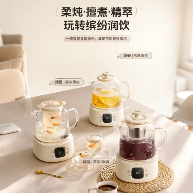 组合销售 产品介绍 产品规格 售后服务 产品咨询 发现好货 九阳/Joyoung 养生壶1.5L茶具电茶壶煮茶壶花茶壶玻璃煮茶器煎药壶中药锅药膳电水壶烧水壶 3900 里程 九阳/Joyoung 养生壶迷你玻璃花茶壶煮茶器 12大功能11档温度 电水壶热水壶烧水壶 1.5L DGD1506BQ 3900 里程 美的/Midea 养生壶 1.5L家用多功能小型全自动办公室烧水壶加厚玻璃煮茶热水壶 MK-YS15P201 4200 里程 美的/Midea 养生壶 1.5L家用养生壶全自动玻璃烧水壶24h预约烧水壶12小时防干烧保护智能恒温 MK-YS15P202 3700 里程 美的/Midea 养生壶 1.5L全自动电热水壶 24h预约12小时智能恒温 14大功能11档控温 花茶壶煮茶器MK-Y12Q 3500 里程