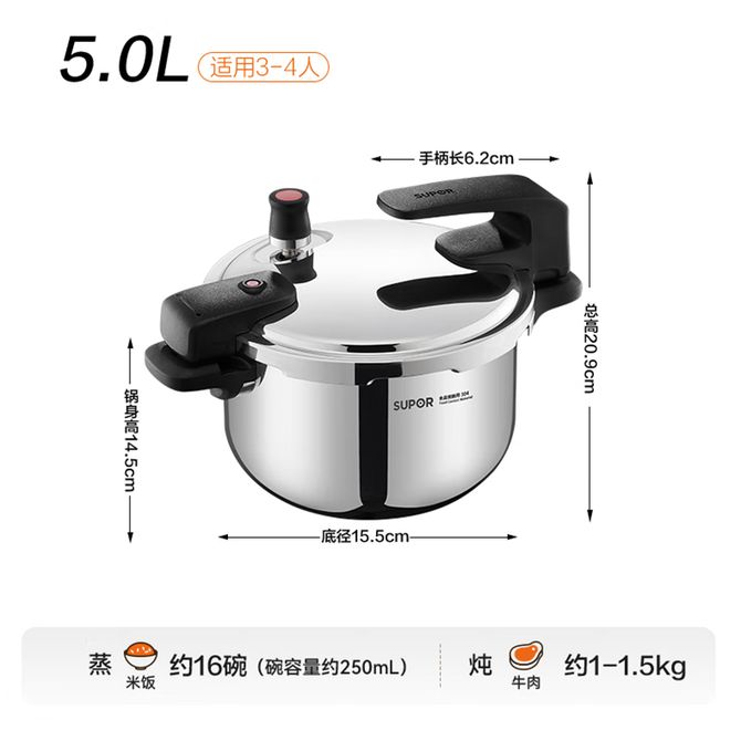 苏泊尔(SUPOR) 100kpa高压锅食品级304不锈钢 可立盖压力锅 5L 短柄好收纳 轻松开合 电磁炉燃气用安全防爆YW223SL2 兑换价格 15200 里程 会员卡别 终身白金卡 白金卡 金卡 银卡 普通卡 儿童卡 服务 由 人人余厨具专营店 发货并提供售后 颜色: 银色 购买数量: 件 库存件 配送地址: 立即购买 加入购物车 成功添加到购物车 关闭 购物车共有 种商品 总金额为: