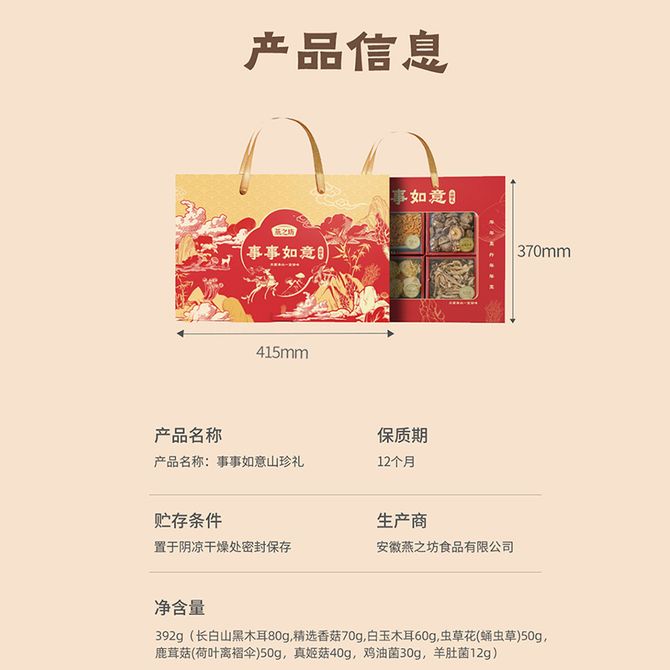 燕之坊 事事如意山珍礼392g南北干货优质产区食材 事事如意山珍礼392g 兑换价格 5700 里程 会员卡别 终身白金卡 白金卡 金卡 银卡 普通卡 儿童卡 服务 由 广西桂人礼互联网科技有限公司 发货并提供售后 规格: 礼盒 购买数量: 件 库存件 配送地址: 立即购买 加入购物车 成功添加到购物车 关闭 购物车共有 种商品 总金额为: 组合销售 产品介绍 产品规格 售后服务 产品咨询 发现好货 岚海渔歌(LANHAIYUGE) 金钩海米虾米干货非特级无盐新鲜开洋虾皮海虾米干虾仁干250g 1900 里程 十月稻田 红枸杞子250g半斤特级干枸杞泡水煲汤煮粥食材 1100 里程 岚海渔歌 金钩海米250g虾米干货 1900 里程 十月稻田 新疆灰枣500g一等灰枣新疆特产小红枣零食煲汤煮粥干货 1100 里程 十月稻田 东北黑木耳 150g肉厚无根干木耳黑龙江东宁特产 火锅炒菜凉拌 6970093763042 1100 里程