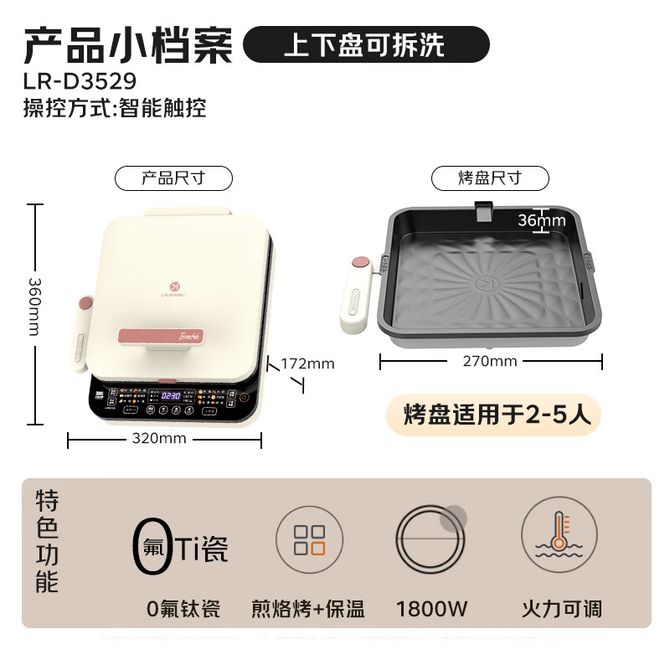 利仁/LIVEN 0氟钛瓷超耐磨电饼铛上下盘可拆36mm加深家庭用1800W双面加热电饼档三明治早餐机煎饼锅LR-D3529 利仁电饼铛LR-D3529 兑换价格 15200 里程 会员卡别 终身白金卡 白金卡 金卡 银卡 普通卡 儿童卡 服务 由 赛丹孚小家电专营店 发货并提供售后 颜色: 其他 购买数量: 件 库存件 配送地址: 立即购买 加入购物车 成功添加到购物车 关闭 购物车共有 种商品 总金额为: 组合销售 产品介绍 产品规格 售后服务 产品咨询 发现好货 苏泊尔(SUPOR)电饼铛家用 双面加热煎饼铛煎烤机三明治机烙饼锅早餐机25mm加深烤盘火力可调JD31A847A 6500 里程 苏泊尔(SUPOR) 电饼铛 自动煎烤机 电火锅多功能 加大加深60mm双加热烙饼 锅面煎饼电饼档 两档火力 JT30A818 5700 里程 苏泊尔(SUPOR)电饼铛家用双面加热电饼档煎烤机烙饼机双面悬浮加热早餐机三明治机JJ30A648-Q 5700 里程 美的(Midea)电饼铛家用智能双面加热煎烤机烙饼机蛋饼机薄饼机煎饼烙饼锅JHN30F 4800 里程 奥克斯 电饼铛家庭用新款双面加热加大尺寸加深烤盘烙饼专用锅自动控温断电煎饼锅早餐机 5200 里程