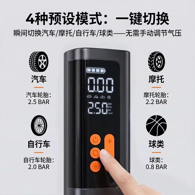 预设胎压+充满自停+多功能气嘴