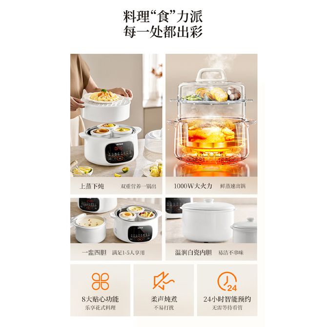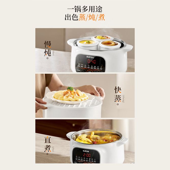 苏泊尔/Supor 电炖锅电炖盅鲜蒸慢炖家用多能蒸炖涮煮柔声炖煮智能预约 304不锈钢底锅 多能蒸炖涮煮 一盅四胆 柔声炖煮 温润白瓷内胆 8大贴心功能 兑换价格 14800 里程 会员卡别 终身白金卡 白金卡 金卡 银卡 普通卡 儿童卡 服务 由 北京致诚博雅贸易有限公司 发货并提供售后 颜色: 其他 购买数量: 件 库存件 配送地址: 立即购买 加入购物车 成功添加到购物车 关闭 购物车共有 种商品 总金额为: