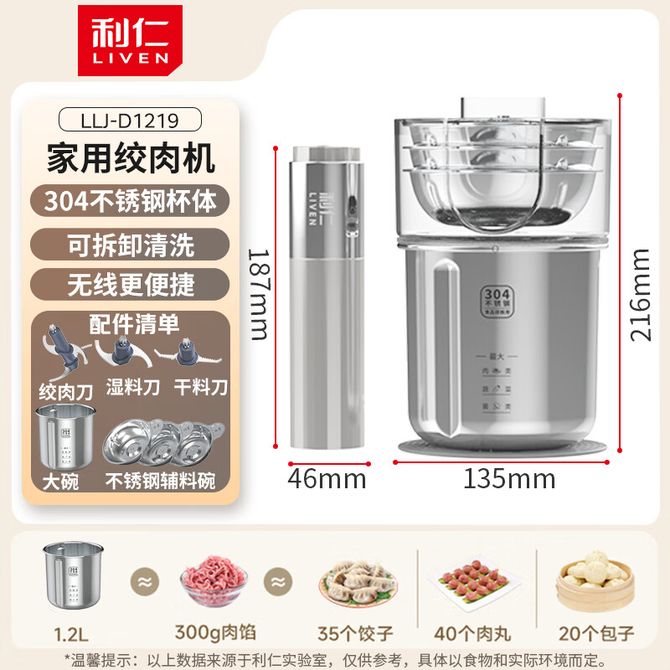 利仁/LIVEN 料理机家用辅食机绞肉机304不锈钢碗碟多功能料理棒绞菜机 无线充电式可套娃收纳佐料机LLJ-D1219 利仁料理机LLJ-D1219 兑换价格 10200 里程 会员卡别 终身白金卡 白金卡 金卡 银卡 普通卡 儿童卡 服务 由 赛丹孚小家电专营店 发货并提供售后 颜色: 其他 购买数量: 件 库存件 配送地址: 立即购买 加入购物车 成功添加到购物车 关闭 购物车共有 种商品 总金额为: 组合销售 产品介绍 产品规格 售后服务 产品咨询 发现好货 卡屋KAWU 绞肉机2.3L家用电动碎肉机PY-37930一副刀片 3300 里程 小熊/Bear 绞肉机家用绞馅机碎肉机电动多功能料理搅拌打肉饺子肉馅蒜蓉机切碎机QSJ-D03W5 3900 里程 小熊/Bear 绞肉机家用QSJ-E03K6 绞馅机 碎肉机 电动多功能料理蒜蓉机 3400 里程 卡屋kawu 蒜蓉器多功能电动无线蒜泥机 1700 里程 苏泊尔(SUPOR) 绞肉机家用多功能电动碎肉机料理机 辅食肉馅机 蔬菜机 大容量 1.75L JR20-B175 3000 里程