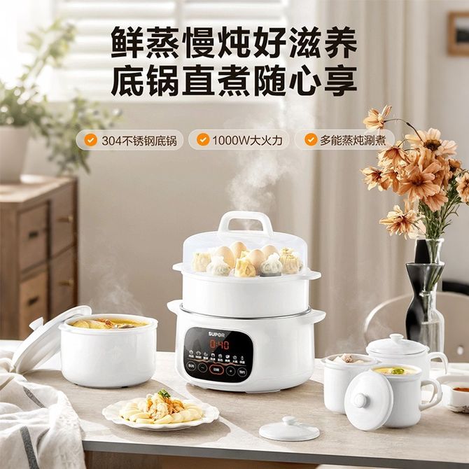 苏泊尔(SUPOR) 电炖锅电炖盅煲汤锅炖汤锅煮粥锅上蒸下炖智能家用可预约 温润白瓷内胆 易洁不串味 8大贴心功能乐享花式料理 柔声炖煮不易打扰 兑换价格 14800 里程 会员卡别 终身白金卡 白金卡 金卡 银卡 普通卡 儿童卡 服务 由 聚品惠家电生活馆 发货并提供售后 颜色: 其他 购买数量: 件 库存件 配送地址: 立即购买 加入购物车 成功添加到购物车 关闭 购物车共有 种商品 总金额为: