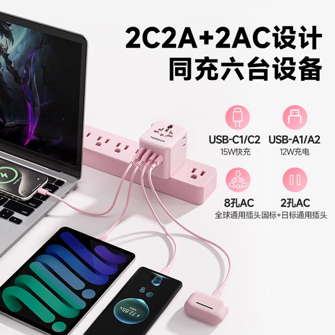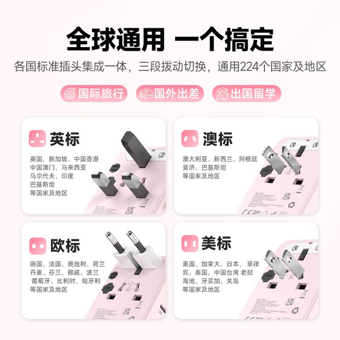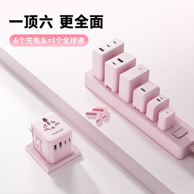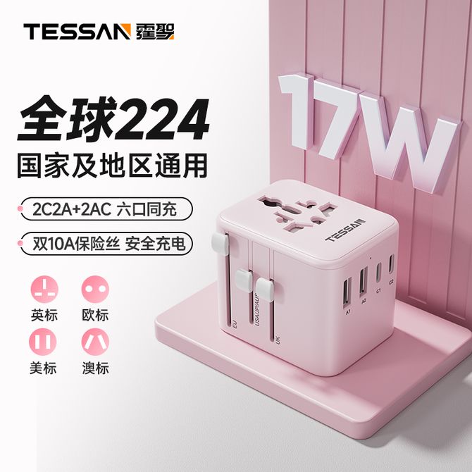 霆圣/TESSAN 全球通旅行转换器17W TS-WTA11-PK 粉色