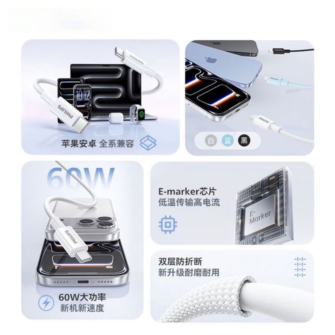 飞利浦/Philips 快充线双Type-C编织线数据线PD认证快充60W超级闪充 详情共用 线长1.2米 兑换价格 1300 里程 会员卡别 终身白金卡 白金卡 金卡 银卡 普通卡 儿童卡 服务 由 贝洛美智能科技精品馆 发货并提供售后 颜色: 蓝色 购买数量: 件 库存件 配送地址: 立即购买 加入购物车 成功添加到购物车 关闭 购物车共有 种商品 总金额为: 组合销售 产品介绍 产品规格 售后服务 产品咨询 发现好货 雷摄 66W超级快充线 5A数据线一拖三充电线 1.2米苹果/Type-c/安卓三合一快充线华为 车载手机快充电源线 LS-366 1300 里程 倍思(Baseus) 倍思(Baseus) 一拖三数据线3.5A快充 苹果/Type-c/安卓手机一拖三充电线1米 适用苹果华为小米三星 1100 里程 品胜(PISEN) 数据线三合一 苹果Type-c安卓手机充电线1.2米快充 1600 里程 品胜 牛仔布 苹果数据线 牛仔布铝合金数据充电线 2100 里程 品胜(PISEN) 三合一数据线多头usb多功能数据车载充电线 3.5A大功率一拖三苹果/安卓/Type-C 适用iphone安卓苹果华为 1400 里程