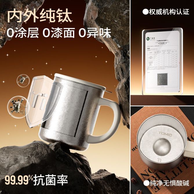 特美刻(TOMIC) 纯钛水杯女泡茶保温办公家用户外咖啡杯 内外纯钛 抗菌保鲜 独立纯钛茶仓 杯口圆润适口 食品接触用杯盖 杯沿硅胶密封圈 兑换价格 14400 里程 会员卡别 终身白金卡 白金卡 金卡 银卡 普通卡 儿童卡 服务 由 赛诺厨具 发货并提供售后 颜色: 黑色 黄色 银色 购买数量: 件 库存件 配送地址: 立即购买 加入购物车 成功添加到购物车 关闭 购物车共有 种商品 总金额为:
