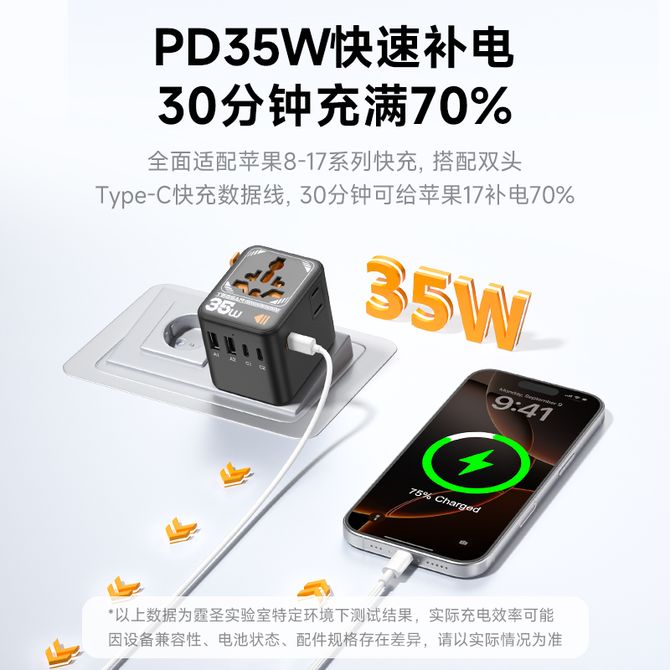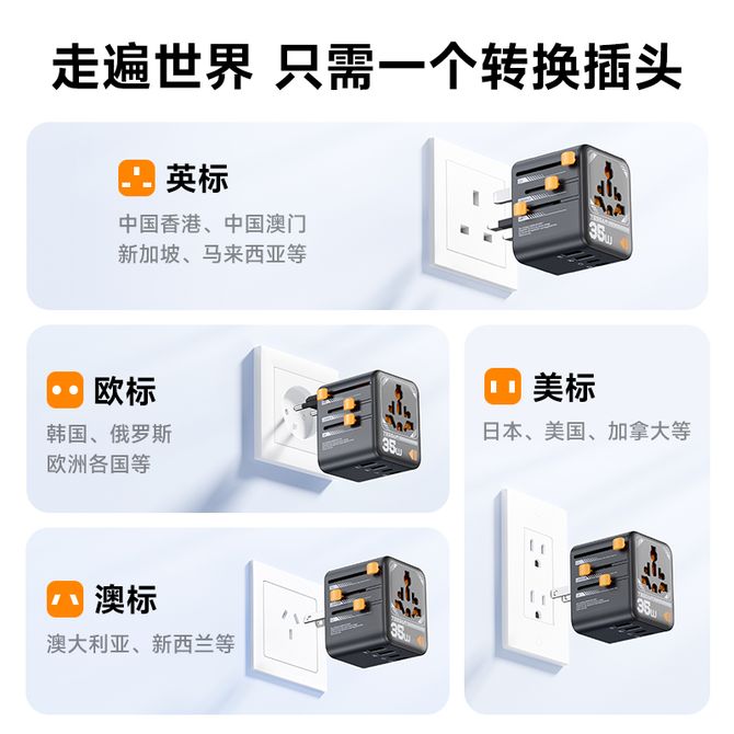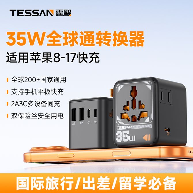 霆圣/TESSAN 全球旅行转换插头35W TS-WTA14-BKA 黑色
