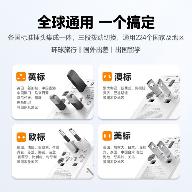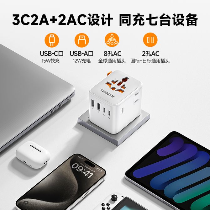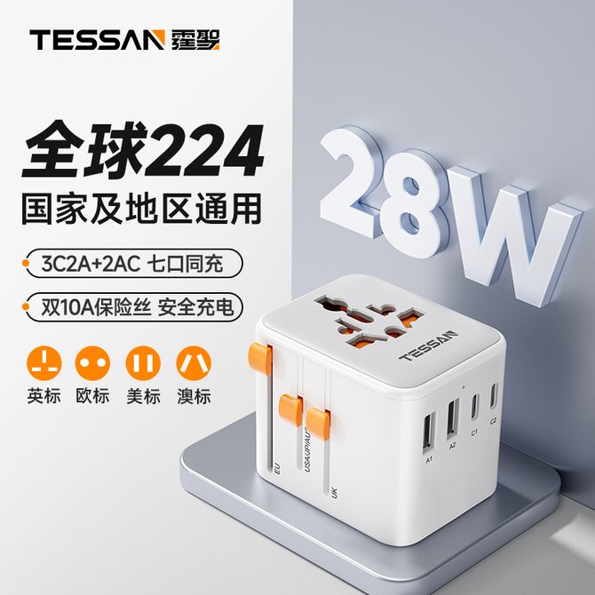 霆圣/TESSAN 全球旅行转换器插座28W TS-WTA08-GRA 灰白色 200+国家地区通用,7台设备同时充电 兑换价格 4800 里程 会员卡别 终身白金卡 白金卡 金卡 银卡 普通卡 儿童卡 服务 由 霆圣官方旗舰店 发货并提供售后 插口: 多口 购买数量: 件 库存件 配送地址: 立即购买 加入购物车 成功添加到购物车 关闭 购物车共有 种商品 总金额为: 组合销售 产品介绍 产品规格 售后服务 产品咨询 发现好货 品胜(PISEN) KY-33智能USB排插 3位5孔3位USB口智能插座 安全保护门 多功能排插/插线板 1.8米 新国标 4400 里程 品胜(PISEN)苹果12 PD快充套装20W充电器 2900 里程 品胜(PISEN) 20W双口快充USB+Type-C充电器插头 适用手机苹果13/iPhone12/11华为nova9荣耀vivo小米OPPO平板ipad 2600 里程 品胜(PISEN) PD20W充电头数据线套装 苹果充电器华为小米手机充电器套装 3900 里程 倍思 小酷苹果氮化镓充电器20W充电头PD数据线 快充套装 带线 白色 2400 里程