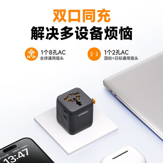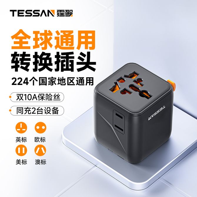 霆圣/TESSAN 全球旅行转换插头(无USB) GM-1005N-BK 黑色