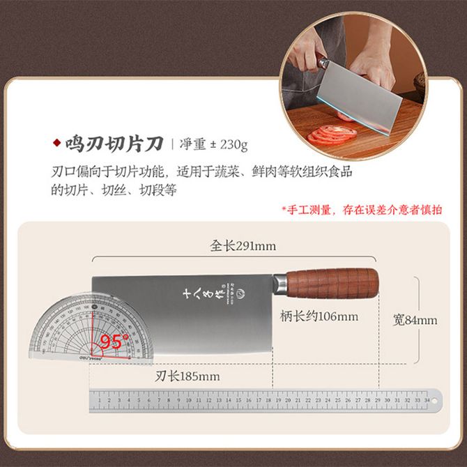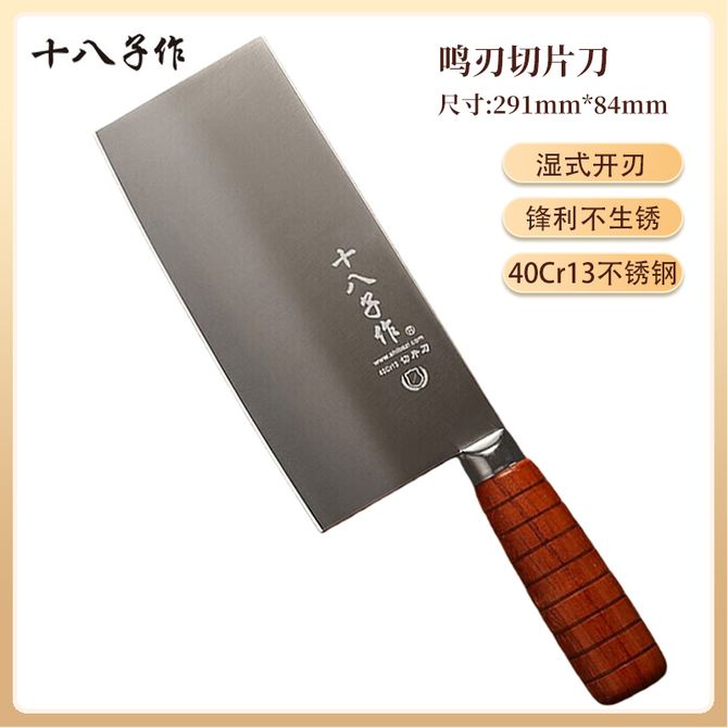 十八子作 鸣刃切片刀 家用厨房菜刀切菜切肉刀 单把 【此为单把切片刀,详情共用】40Cr13不锈钢,锋利不易生锈,湿式开刃法,花梨木手柄 兑换价格 2600 里程 会员卡别 终身白金卡 白金卡 金卡 银卡 普通卡 儿童卡 服务 由 广西桂雅文化传媒有限公司 发货并提供售后 颜色: 其他 购买数量: 件 库存件 配送地址: 立即购买 加入购物车 成功添加到购物车 关闭 购物车共有 种商品 总金额为: