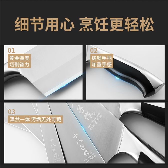 十八子作 典雅斩切刀 家用厨房菜刀斩骨头刀切肉刀两用 持久锋利 【此款为单把斩切刀 详情共用】锋利持久 黄金配重 80Cr13钢芯 湿式开刃 三层复合 ABS刀柄 兑换价格 7000 里程 会员卡别 终身白金卡 白金卡 金卡 银卡 普通卡 儿童卡 服务 由 广西桂雅文化传媒有限公司 发货并提供售后 颜色: 其他 购买数量: 件 库存件 配送地址: 立即购买 加入购物车 成功添加到购物车 关闭 购物车共有 种商品 总金额为: