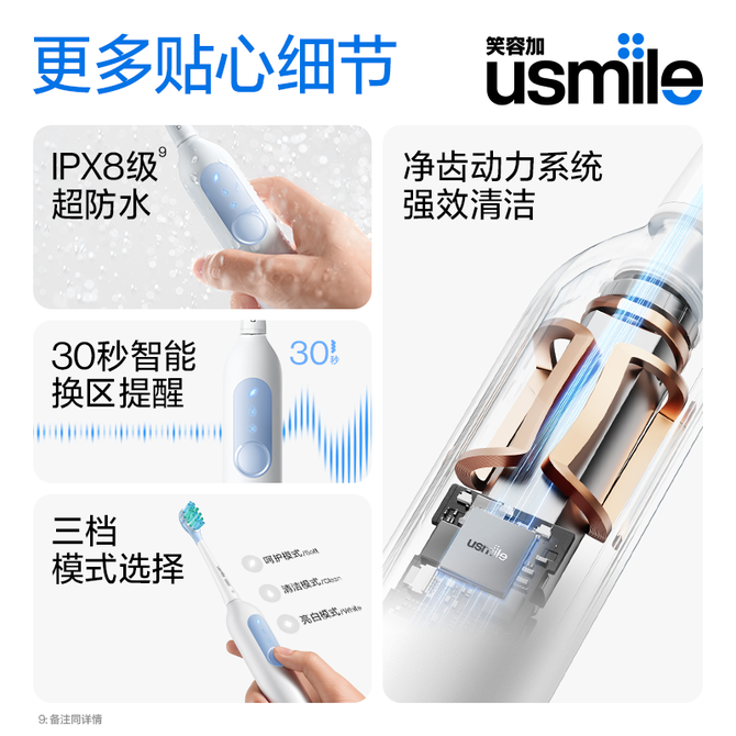 笑容加 (usmile) 电动牙刷学生性价比声波震动旅行好物成人送男女朋友情侣生日实用礼物礼盒 专研净齿动力系统 专利缓震科技 兑换价格 8700 里程 会员卡别 终身白金卡 白金卡 金卡 银卡 普通卡 儿童卡 服务 由 聚品惠家电生活馆 发货并提供售后 颜色: 其他 购买数量: 件 库存件 配送地址: 立即购买 加入购物车 成功添加到购物车 关闭 购物车共有 种商品 总金额为: 组合销售 产品介绍 产品规格 售后服务 产品咨询 发现好货 小米 声波电动牙刷家用男女高频振动充电式防水牙刷 T300标准版 4400 里程 飞利浦/Philips 电动牙刷 HX2431 成人声波震动牙刷 净力刷 2种模式 温和清洁 电动牙刷 双色可选 6500 里程 小米 米家声波电动牙刷 声波洁牙柔感护龈 超长续航 T200蓝色 4400 里程 小米 声波电动牙刷家用电牙刷男女士牙刷高频振动充电式防水牙刷牙齿清洁 4400 里程 飞利浦/Philips 电动牙刷头HX9023 适配HX6511/HX6730/HX6761/HX3226/HX3216/HX3714/HX6856 5700 里程