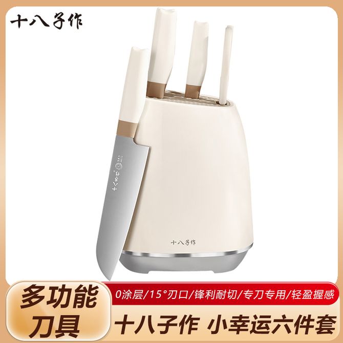 十八子作 小幸运六件套 砍骨刀小切刀多用刀水果刀剪刀刀座 厨房0涂层刀具套装 高颜值奶油风,0化学涂层添加,锋利耐切,15°纤薄刃口,专刀专用,轻盈握感 兑换价格 9600 里程 会员卡别 终身白金卡 白金卡 金卡 银卡 普通卡 儿童卡 服务 由 广西桂雅文化传媒有限公司 发货并提供售后 颜色: 其他 购买数量: 件 库存件 配送地址: 立即购买 加入购物车 成功添加到购物车 关闭 购物车共有 种商品 总金额为: