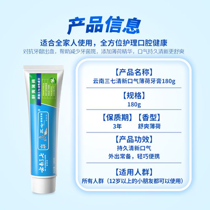 三七 牙膏(舒爽薄荷)180g 三七 牙膏(舒爽薄荷)180g 兑换价格 1100 里程 会员卡别 终身白金卡 白金卡 金卡 银卡 普通卡 儿童卡 服务 由 大雅品味个护家清名品汇 发货并提供售后 化妆品容量: 180g/ml 购买数量: 件 库存件 配送地址: 立即购买 加入购物车 成功添加到购物车 关闭 购物车共有 种商品 总金额为: 组合销售 产品介绍 产品规格 售后服务 产品咨询 发现好货 云南白药牙膏单支清新口气呵护牙龈健康牙周冬青 活性肽165g 1500 里程 云南白药 健齿护龈改善牙龈问题清新口气留兰香型180g 1500 里程 云南白药 牙膏薄荷香型100g减轻牙龈问题清新口气祛除口腔异味 1100 里程 云南白药牙膏留兰香型180g 去黄牙垢口气清新减轻牙龈问题 1500 里程 狮王(Lion) WHITE&WHITE大白小苏打益生菌清新牙膏120g 2支美白去黄清新口气(沁凉青柠) 1100 里程