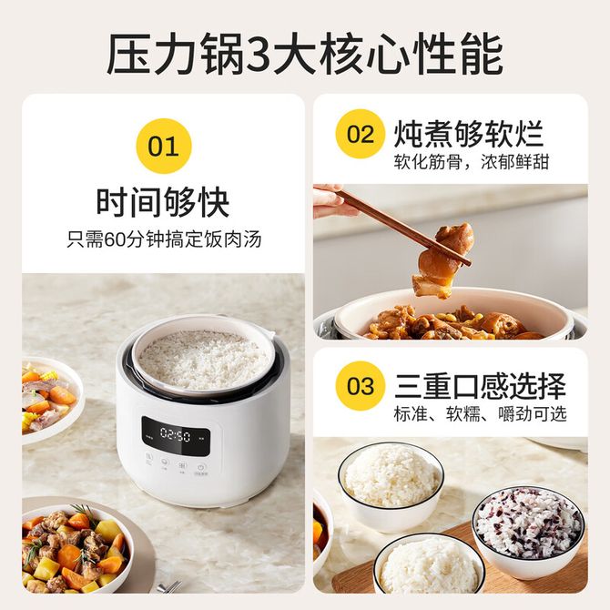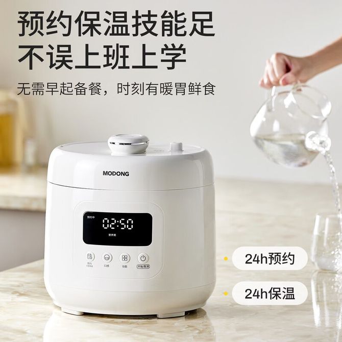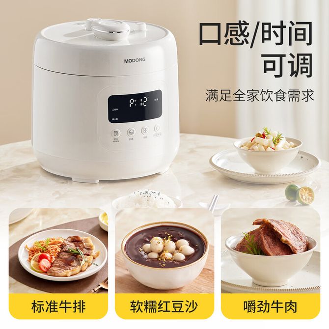 摩 动/modong 电压力锅高压锅压力锅4L大容量家用一键泄压排气多功能自动高压电饭锅1000W大功率不沾涂层内胆 4L 高压微压双模式丨低温煮 MD-YFB04W单胆 电压力锅4升单胆 白色 兑换价格 10500 里程 会员卡别 终身白金卡 白金卡 金卡 银卡 普通卡 儿童卡 服务 由 恒百生活馆 发货并提供售后 颜色: 白色 购买数量: 件 库存件 配送地址: 立即购买 加入购物车 成功添加到购物车 关闭 购物车共有 种商品 总金额为: 组合销售 产品介绍 产品规格 售后服务 产品咨询 发现好货 苏泊尔(SUPOR) 电饭煲电饭锅4L大容量 不粘内胆4-6个人前置大屏面板24小时预约上蒸下煮多功能家用智能SF40FC0063 8300 里程 奥克斯/AUX 电饭煲3L电饭锅 2-3人小型预约智能电饭煲VK-309F2 5100 里程 苏泊尔(SUPOR) 迷你电饭煲家用电饭锅2-3人3L小容量蓝钻不粘内胆快煮饭功能智能预约小型多功能SF30FC0187 6100 里程 美菱/MELNG 电饭煲3L触控式预约定时MF-LC3005 4400 里程 苏泊尔(SUPOR) 煮饭煮粥智能预约多功能一锅多用小型微压电饭锅30FC0187 7200 里程