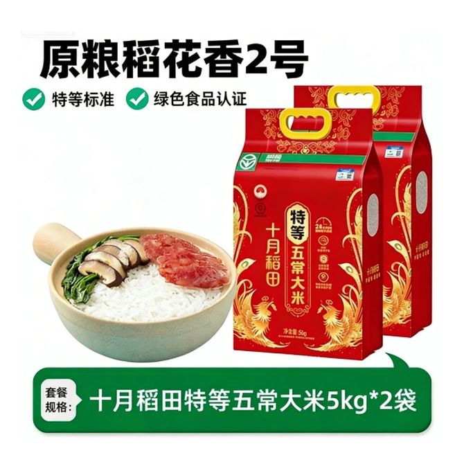 十月稻田 【稻花香2号】特等五常大米5kg*2袋 【溯源防伪 绿色食品】 【稻花香2号】 兑换价格 12700 里程 会员卡别 终身白金卡 白金卡 金卡 银卡 普通卡 儿童卡 服务 由 烁烁食品店 发货并提供售后 规格: 组合 购买数量: 件 库存件 配送地址: 立即购买 加入购物车 成功添加到购物车 关闭 购物车共有 种商品 总金额为: 组合销售 产品介绍 产品规格 售后服务 产品咨询 发现好货 金熊 泰国茉莉 香米 1kg 泰国原料进口 1300 里程 十月稻田当季新米辽河长粒香大米 5kg 东北大米 香米 粳米 十斤 2100 里程 源头说 五常有机稻花香新米 东北大米 2.5kg(双重防伪认证) 4200 里程 十月稻田 长粒香大米2.5kg 东北大米5斤 东北香米 1300 里程 稻可道雪地黑土东北珍珠大米5kg 1600 里程