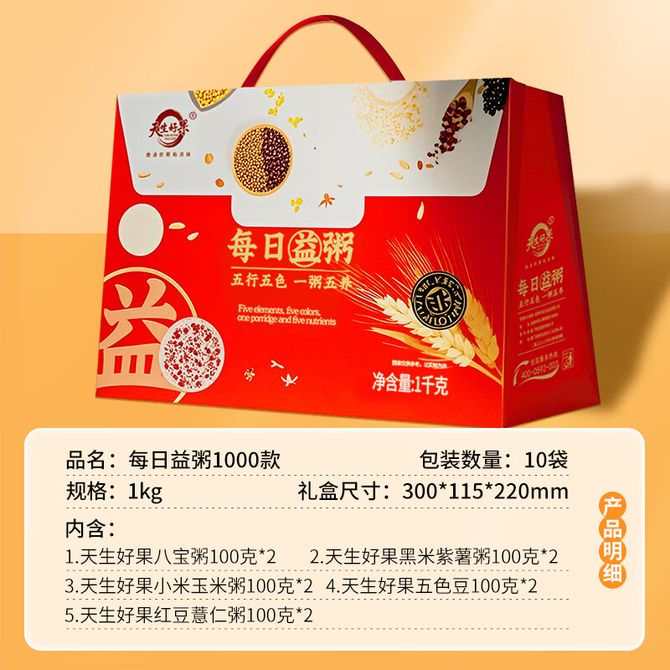 天生好果/TIAN SHENG HAO GUO 每日益粥五谷杂粮粥早餐伴侣1000款 营养均衡科学配比 每一餐都很重要 兑换价格 2000 里程 会员卡别 终身白金卡 白金卡 金卡 银卡 普通卡 儿童卡 服务 由 礼小二食品专营店 发货并提供售后 规格: 礼盒 购买数量: 件 库存件 配送地址: 立即购买 加入购物车 成功添加到购物车 关闭 购物车共有 种商品 总金额为: