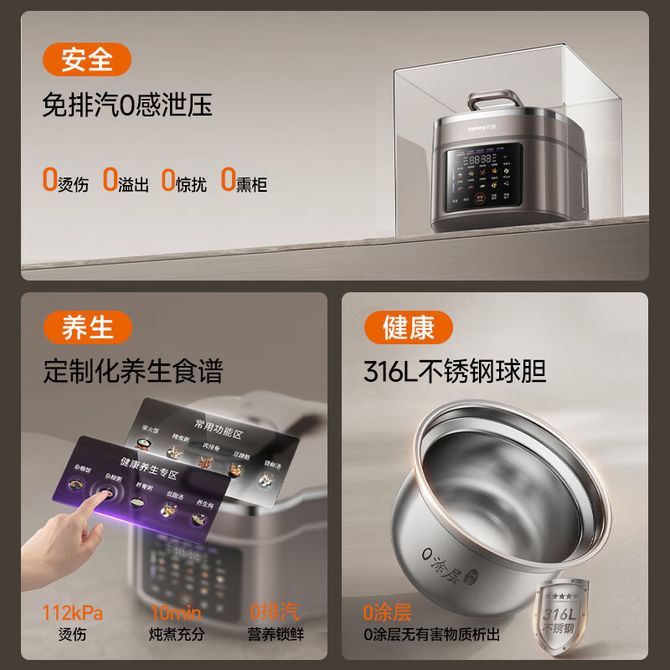 九阳/Joyoung 尊享电压力锅Y-50IHZ6 免排汽1代 5L超高压112KPa猛火IH智能预约0涂层母婴316L双球胆煲汤电饭煲 免排汽1代 5L超高压112KPa猛火IH智能预约0涂层母婴316L双球胆煲汤电饭煲 兑换价格 65200 里程 会员卡别 终身白金卡 白金卡 金卡 银卡 普通卡 儿童卡 服务 由 纳华优选 发货并提供售后 颜色: 灰色 购买数量: 件 库存件 配送地址: 立即购买 加入购物车 成功添加到购物车 关闭 购物车共有 种商品 总金额为: 组合销售 产品介绍 产品规格 售后服务 产品咨询 发现好货 苏泊尔(SUPOR)电压力锅 6升大容量 智能触控 球釜双胆 开盖收汁 一键排压 SY-60YC8001Q 高压锅 16900 里程 美的/Midea 电压力锅家用5L大容量多功能高压锅双胆一键收汁智能预约不粘电高压锅电饭锅煮粥煲汤锅 一锅双胆【一键收汁入味】 YL50M1-702 10600 里程 苏泊尔(SUPOR) 5L电压力锅家用电高压锅双胆高压电饭锅煮饭智能预约 SY-50YC8186 11300 里程 美的/Midea 电压力锅 【一锅双胆】5L全自动家用智能预约 上蒸下煮 不粘双胆煲汤炖肉 YL50Q3-451 10900 里程 美的/Midea 电压力锅 高压锅家用电压力煲智能预约电饭煲大容量多功能定时预约电饭煲3-8人单胆旋钮款4L MY-E4809 8700 里程