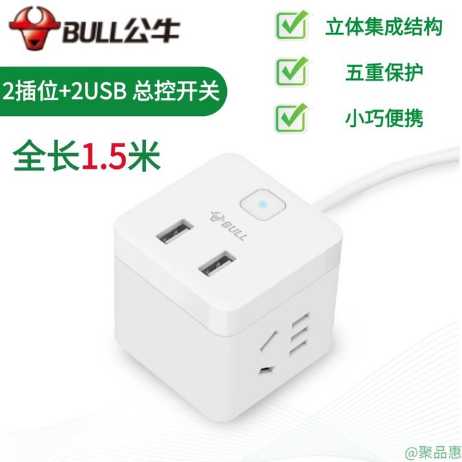 公牛(BULL) 小魔方USB插座 插线板/插排/排插/接线板 2孔+2USB口全长1.5米 立体集成结构,插头立体排布互不干扰 自动分流·USB自动识别 兑换价格 2600 里程 会员卡别 终身白金卡 白金卡 金卡 银卡 普通卡 儿童卡 服务 由 聚品惠家电生活馆 发货并提供售后 插排线: 有线 插位: 4插位 购买数量: 件 库存件 配送地址: 立即购买 加入购物车 成功添加到购物车 关闭 购物车共有 种商品 总金额为: