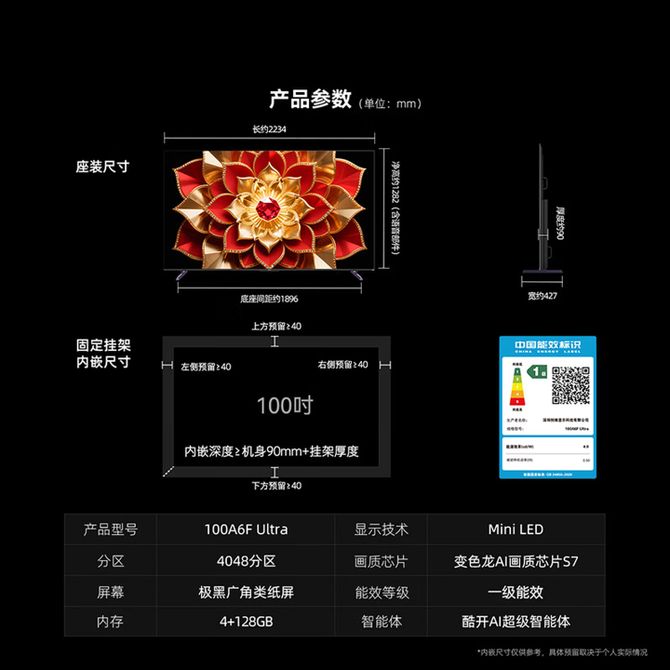 创维/Skyworth 100A6F Ultra电视 100英寸智能平板电视机 4048分区Mini LED 液晶游戏 一级能效 兑换价格 818900 里程 会员卡别 终身白金卡 白金卡 金卡 银卡 普通卡 儿童卡 服务 由 弘济家电 发货并提供售后 颜色: 黑色 购买数量: 件 库存件 配送地址: 立即购买 加入购物车 成功添加到购物车 关闭 购物车共有 种商品 总金额为: