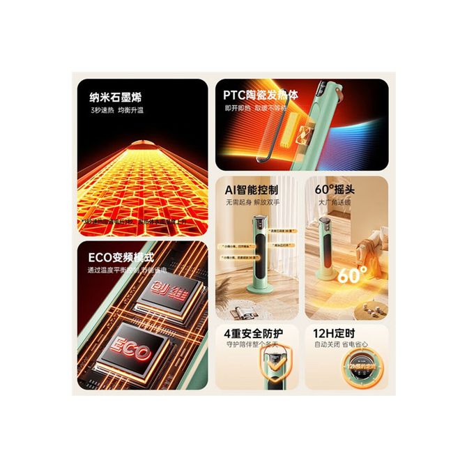 创维/Skyworth A870智能语音石墨烯取暖器家用暖风机电热取暖器电暖器 纳米石墨烯3秒速热 AI智能控制 60°摇头 12H定时 兑换价格 23000 里程 会员卡别 终身白金卡 白金卡 金卡 银卡 普通卡 儿童卡 服务 由 弘济家电 发货并提供售后 颜色: 白色 绿色 购买数量: 件 库存件 配送地址: 立即购买 加入购物车 成功添加到购物车 关闭 购物车共有 种商品 总金额为: 组合销售 产品介绍 产品规格 售后服务 产品咨询 发现好货 彩虹 全线路安全保护调温电热毯 单人款 1.5*0.7米 XL1203 4500 里程 康佳/Konka 取暖器家用石墨烯暖风机立式电暖气浴室电暖风节能热风机速热暖风扇摇头电暖器烤火炉 5700 里程 彩虹(RAINBOW)电热毯全线路安全保护双控双温电热毯(1.8*1.5m)定时电褥子电暖毯一键排潮高温自动断电1358花色随机 8700 里程 美的(Midea)热水器 F05-15A1(S) 厨宝快热小厨宝5升厨房热水宝储水迷你安全家用蓝钻内胆安全厨宝洗速热上出水非下出水 5升上出水1650W速热 17800 里程 志高(CHIGO) 暖风机取暖器电暖器电暖气家用办公室卧室桌面电暖风小型便携式立卧 2400 里程