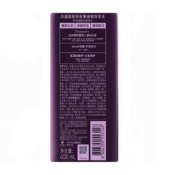 吕 紫吕滋盈韧发密集强韧洗发水 400ml*2 油性头皮护理|控油强韧防断发|新老版随机发 兑换价格 9400 里程 会员卡别 终身白金卡 白金卡 金卡 银卡 普通卡 儿童卡 服务 由 beauty 发货并提供售后 化妆品容量: 组合 购买数量: 件 库存件 配送地址: 立即购买 加入购物车 成功添加到购物车 关闭 购物车共有 种商品 总金额为: 组合销售 产品介绍 产品规格 售后服务 产品咨询 发现好货 沙宣清盈顺柔400+200洗护优惠装(新老包装随机发货) 4300 里程 欧舒丹 (L'OCCITANE)草本精华修护洗发露 300ml 9600 里程 沙宣200g水润去屑洗发水(新老包装随机发货) 1700 里程 海飞丝/Head-shoulders 去屑洗发水 丝质柔滑洗发露200g/400g/750g 1300-3000 里程 海飞丝/Head-shoulders 去屑洗发水 清爽去油洗发露200g/400g/750g 1300-3000 里程