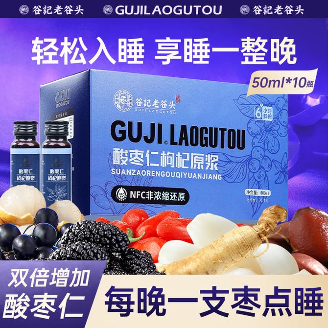 谷记老谷头/GUJILAOGUTOU 酸枣仁枸杞原浆500ml(50ml×10瓶) NFC非浓缩还原 老谷头人参酸枣仁枸杞原浆百合黑红枸杞桂圆茯苓纯浓缩原液汁NFC 品鉴1盒装 兑换价格 8300 里程 会员卡别 终身白金卡 白金卡 金卡 银卡 普通卡 儿童卡 服务 由 啊兔食品专营店 发货并提供售后 规格: 盒装 购买数量: 件 库存件 配送地址: 立即购买 加入购物车 成功添加到购物车 关闭 购物车共有 种商品 总金额为: