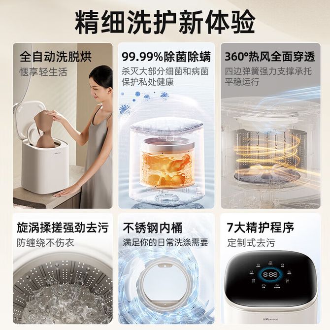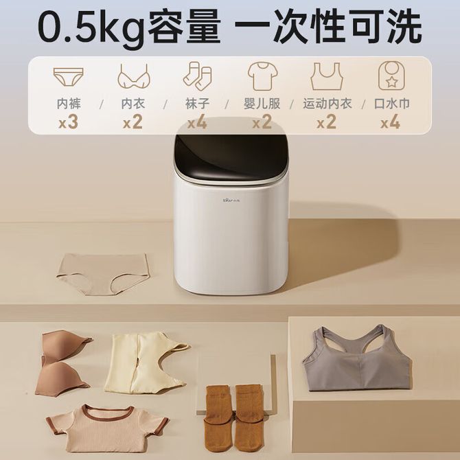 组合销售 产品介绍 产品规格 售后服务 产品咨询 发现好货 小熊/Bear 迷你洗衣机 XYJ-C05V5 8200 里程 小熊/Bear 内衣裤洗衣机 双重除菌3档可选 XYJ-C05V5 8000 里程 美的/Midea 0.5kg迷你洗衣机 内衣裤洗衣机小型 迷你洗衣机 高温除菌螨 轻音洗 MNB5VCAW0E 27400 里程 OIDIRE 迷你洗衣机 双桶便携清洗机 半自动小型清洗杯婴儿衣物迷你清洗机 出差旅行宿舍用迷你洗衣机 ODI-XYJ16 10000 里程 大宇 折叠迷你洗衣机便携旅游内衣袜子小型半自动清洗机 DYXY-ZD13 13000 里程