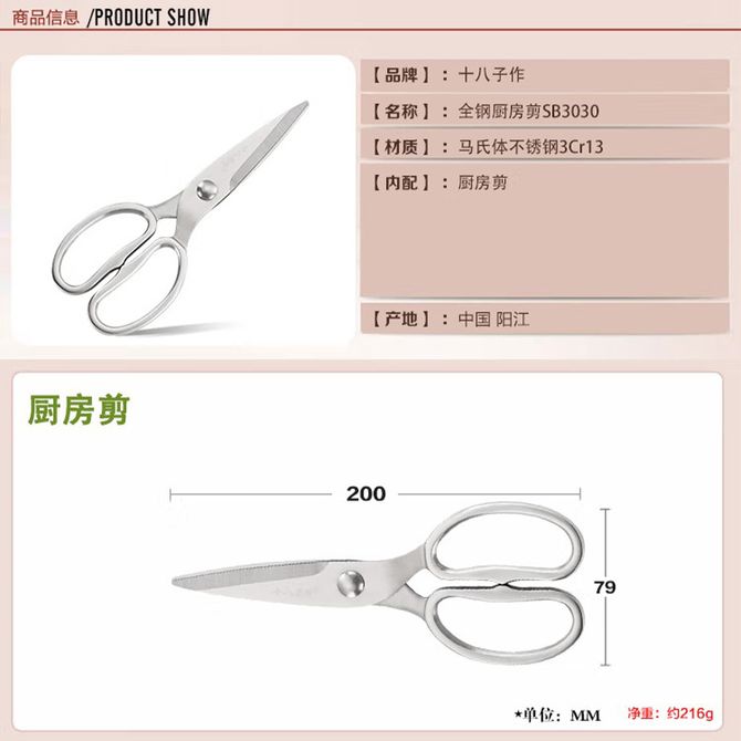 十八子作 不锈钢厨房剪刀 全钢家用锋利耐用厨用剪刀 【厨房剪刀】全钢材质 刃口锋利 兑换价格 3900 里程 会员卡别 终身白金卡 白金卡 金卡 银卡 普通卡 儿童卡 服务 由 卓鹏商贸生活馆 发货并提供售后 颜色: 其他 购买数量: 件 库存件 配送地址: 立即购买 加入购物车 成功添加到购物车 关闭 购物车共有 种商品 总金额为: