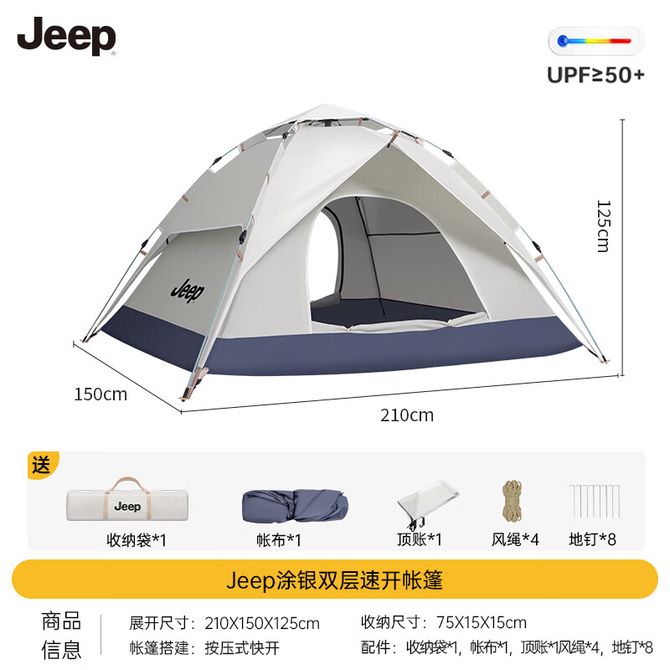 Jeep 帐篷户外露营便携式速开可折叠野营野外防风雨过夜露营装备新款 2.1cm涂银双层速开帐篷米白 Jeep涂银双层速开帐篷 兑换价格 13700 里程 会员卡别 终身白金卡 白金卡 金卡 银卡 普通卡 儿童卡 服务 由 赛丹孚运动户外专营店 发货并提供售后 颜色: 米白色 购买数量: 件 库存件 配送地址: 立即购买 加入购物车 成功添加到购物车 关闭 购物车共有 种商品 总金额为: