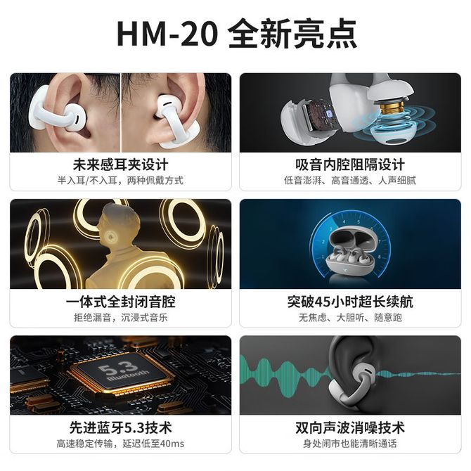 纽曼(Newmine) 真无线耳夹式蓝牙耳机 ENC通话降噪蓝牙5.4全景音效挂耳式耳机 舒适不入耳 360°全景立体音效 定向传音技术 ENC降噪通话 游戏音乐双模式 兑换价格 6000 里程 会员卡别 终身白金卡 白金卡 金卡 银卡 普通卡 儿童卡 服务 由 上海亨奈电器科技有限公司 发货并提供售后 颜色: 白色 黑色 购买数量: 件 库存件 配送地址: 立即购买 加入购物车 成功添加到购物车 关闭 购物车共有 种商品 总金额为: 组合销售 产品介绍 产品规格 售后服务 产品咨询 发现好货 雷摄 运动蓝牙耳机无线跑步超长续航待机半入耳降噪高端健身2024新款 BT-03半入耳 1400 里程 华为/Huawei FreeBuds SE 3 无线蓝牙耳机 流光金 6100 里程 纽曼 LY63蓝牙耳机耳夹式骨传导概念开放式不入耳无线运动音乐通话降噪 3400 里程 纽曼(Newmine) 夹耳式蓝牙耳机 超无感佩戴空气感舒适体验 LY63 3400 里程 飞利浦(PHILIPS) 骨传导通话降噪耳夹式真无线开放耳机TAT3469 7000 里程