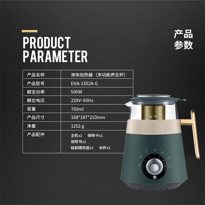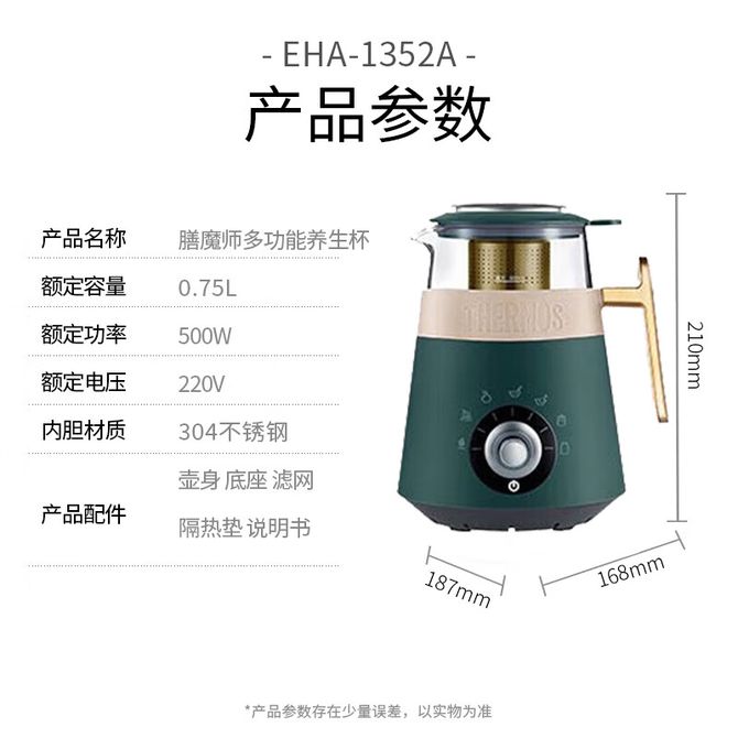 膳魔师(THERMOS) 养生壶多功能煮茶壶家用办公室小型烧水壶煮茶器花茶壶养生杯 0.75L礼物 EHA-1352A 一个人的养生厨房 0.75L小七容量 兑换价格 15400 里程 会员卡别 终身白金卡 白金卡 金卡 银卡 普通卡 儿童卡 服务 由 小米家用电器优品店 发货并提供售后 颜色: 其他 购买数量: 件 库存件 配送地址: 立即购买 加入购物车 成功添加到购物车 关闭 购物车共有 种商品 总金额为: