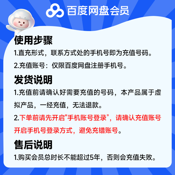 百度网盘 SVIP会员月卡 百度网盘超级会员30天 百度云会员 5TB存储空间 手机备份 智能助理 高清扫描 直充 直充到账,填写百度网盘账号绑定手机号提交充值 兑换价格 1600 里程 会员卡别 终身白金卡 白金卡 金卡 银卡 普通卡 儿童卡 此商品正在进行团购,点击查看活动详情 服务 由 道春生活服务专营店 发货并提供售后 卡券规格: 单张 购买数量: 件 库存件 立即购买 成功添加到购物车 关闭 购物车共有 种商品 总金额为: