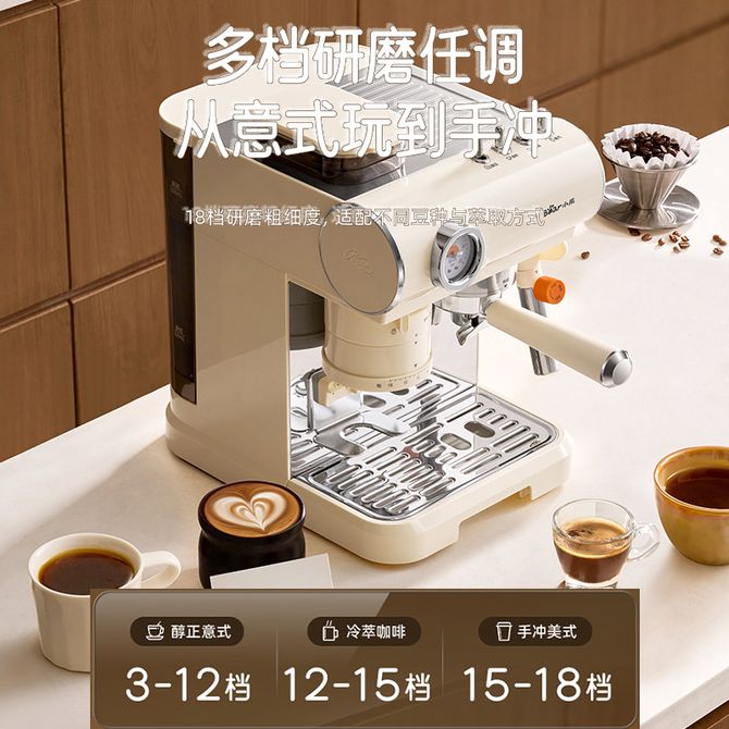 组合销售 产品介绍 产品规格 售后服务 产品咨询 发现好货 柏翠/Petrus 小白醒醒 浓缩意式咖啡机 1.2L可拆卸水箱 稳压萃取 家用小型半自动蒸汽打奶泡 26100 里程 磨客 咖啡机家用意式小型半自动花式浓缩咖啡蒸汽打奶泡一体泵压式高压萃取多功能奶泡机MK-382米白色 11500 里程 东菱/Donlim 触控咖啡机研磨一体机 智能恒温美式全自动滴滤式咖啡壶DL-KF1061 17300 里程 小熊/Bear 咖啡机美式 家用滴漏式全自动迷你小型咖啡粉泡茶两用办公室煮茶机KFJA06K1 4400 里程 东菱Donlim 触控研磨一体咖啡机 智能恒温美式全自动滴滤式咖啡壶DL-KF1061 19200 里程