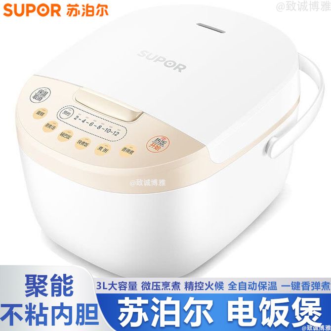 苏泊尔/Supor 电饭煲3L大容量家用电饭锅煮饭煲一键香弹煮可保温电饭煲 3L大容量 微压烹煮 精控火候 全自动保温 一键香弹煮 聚能不粘内胆 兑换价格 11700 里程 会员卡别 终身白金卡 白金卡 金卡 银卡 普通卡 儿童卡 服务 由 北京致诚博雅贸易有限公司 发货并提供售后 颜色: 其他 购买数量: 件 库存件 配送地址: 立即购买 加入购物车 成功添加到购物车 关闭 购物车共有 种商品 总金额为: