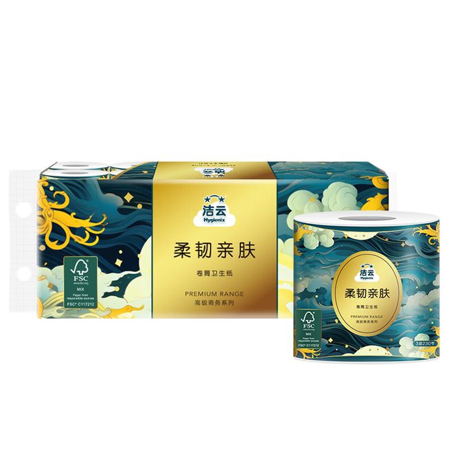 洁云新商务230节3层压花FSC卷纸(独立包装)10卷/提